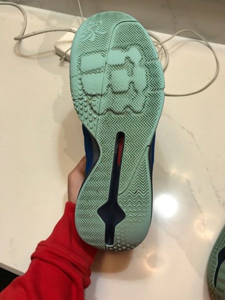 Die Außensohle hat ein besonderes und anhaftendes Muster. Es garantiert gute Traktion auf dem Parkett. Das Modell aus dem Grund der Dichte und Weichheit der Gummi kommt viel schlimmer auf den härteren Spielfelder zurecht, die eine übermäßige Exploatation aufruft. Die Designer haben in die Sohle auch Swoosh gegeben, und das Gummimaterial überlappt die Zwischensohle, indem es Dir die Möglichkeit des Schmetterns und Dribblings ohne Angst um Grip gibt.